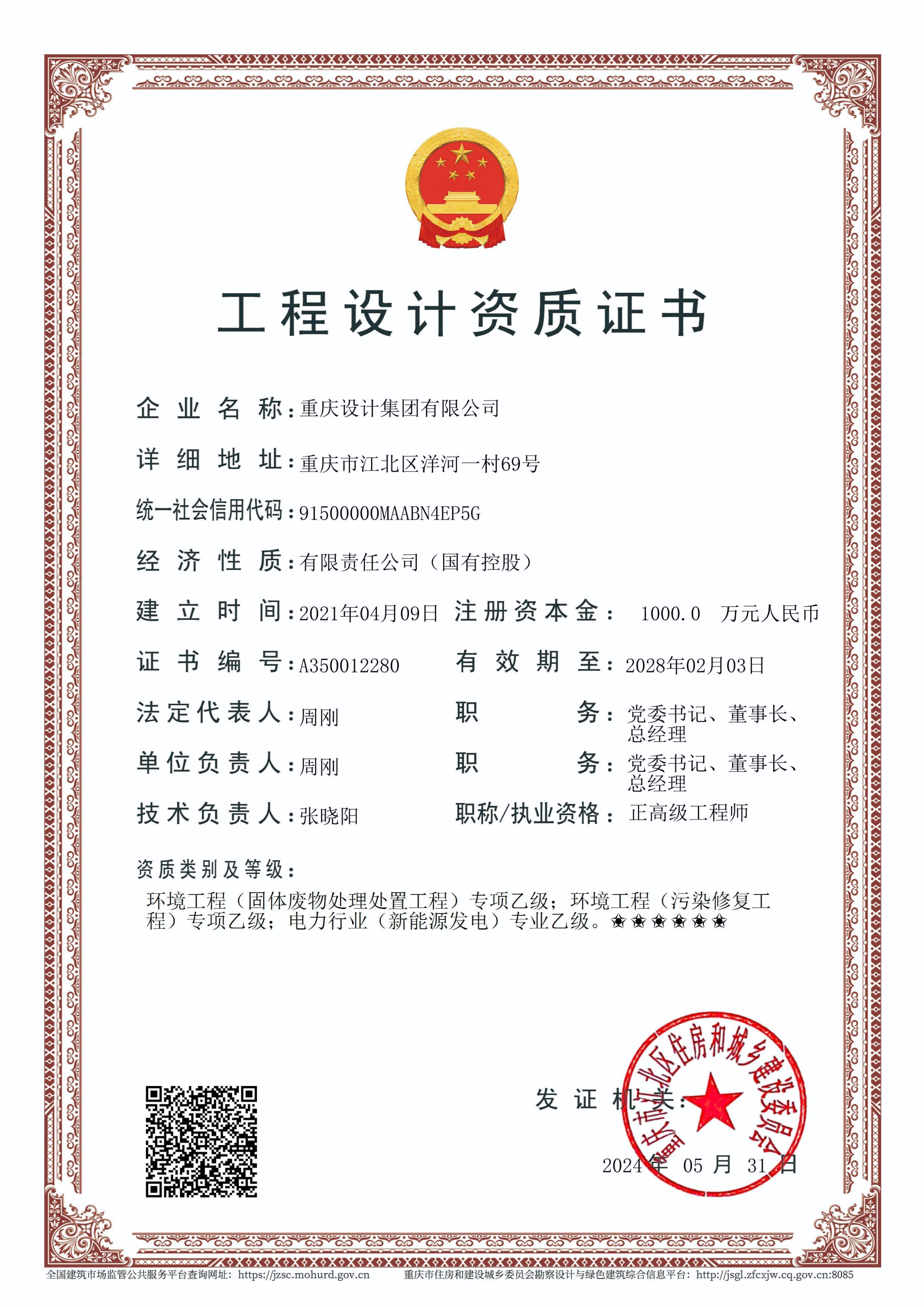 工程设计资质证书